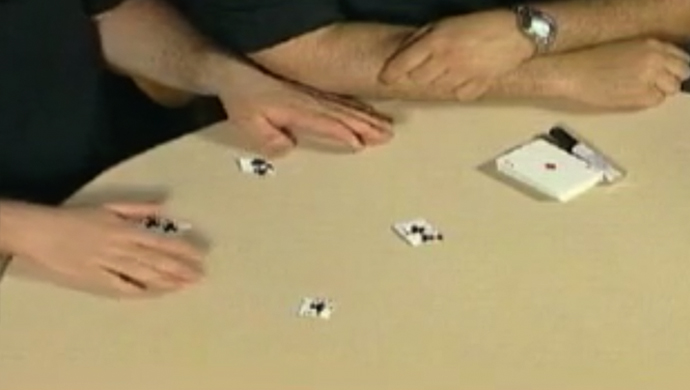 El mago rompe en cuatro trozos una carta FIRMADA. Los trozos son colocados sobre la mesa en forma de cuadrado y al pasar las manos sobre ellos, comienzan a viajar inexplicablemente de una mano a la otra (chink a chink). Cuando se han reunido todos bajo una de las manos, el mago hace un paso mágico y sorprendentemente la carta SE RESTAURA CON LA FIRMA del espectador, el cual puede examinarla y llevársela de recuerdo.